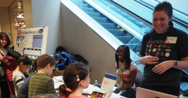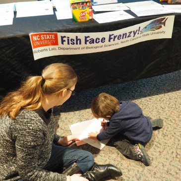 Dances with Fishes showcases some of the cichlid behaviors we measure in the lab. We display actual experimental footage, as well as a video that compares cichlid social interactions to human social interactions. Additionally, we teach two different dances, the Courtship Cha Cha and the Come-at-me-bro Do-si-do. Our handouts for the event diagram and explain the cichlid behaviors, and show how to do the human dance steps as well.